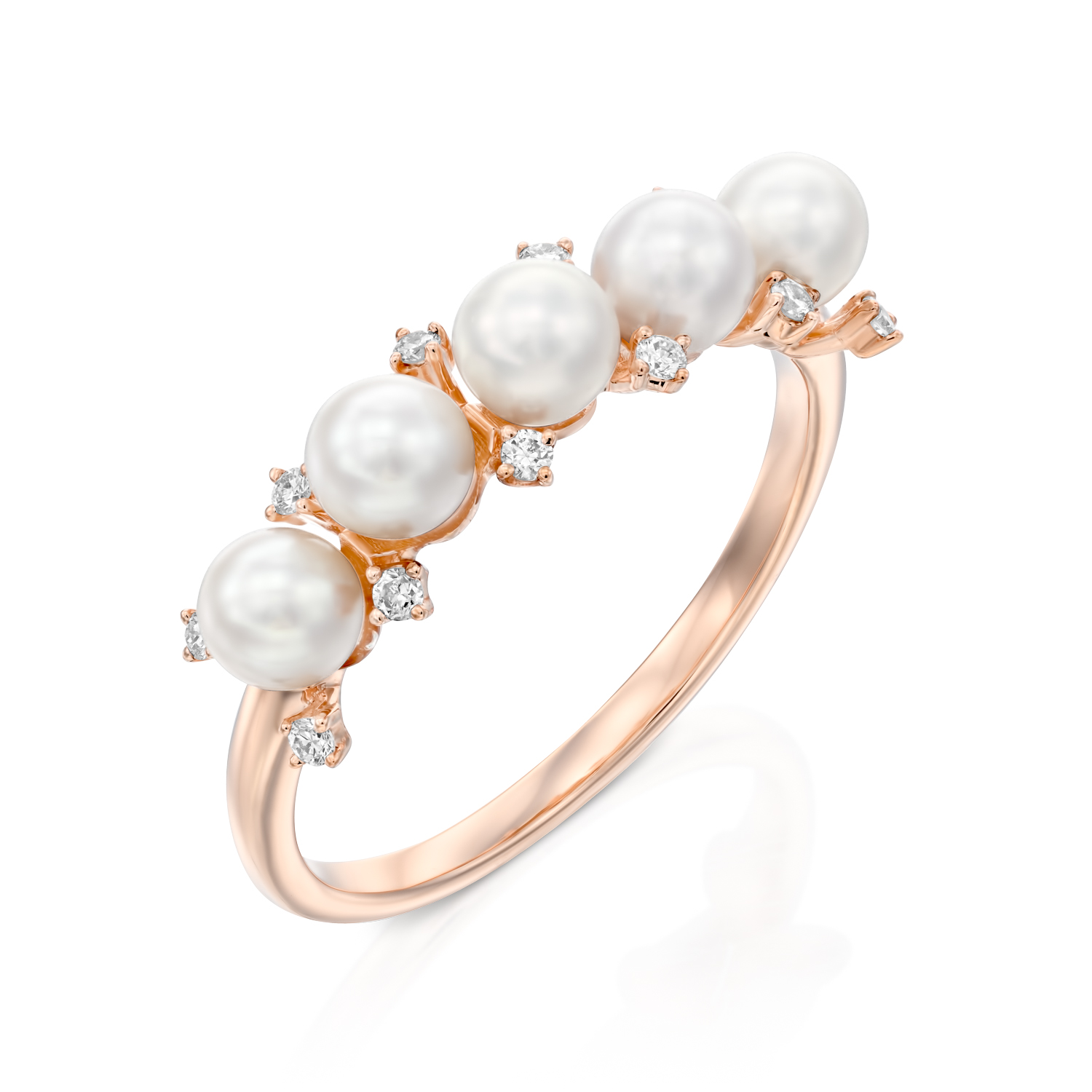 “The Shanji ring represents peace and comfort, with five carefully selected natural pearls set in 14K gold, combined with natural diamonds weighing a total of 0.10