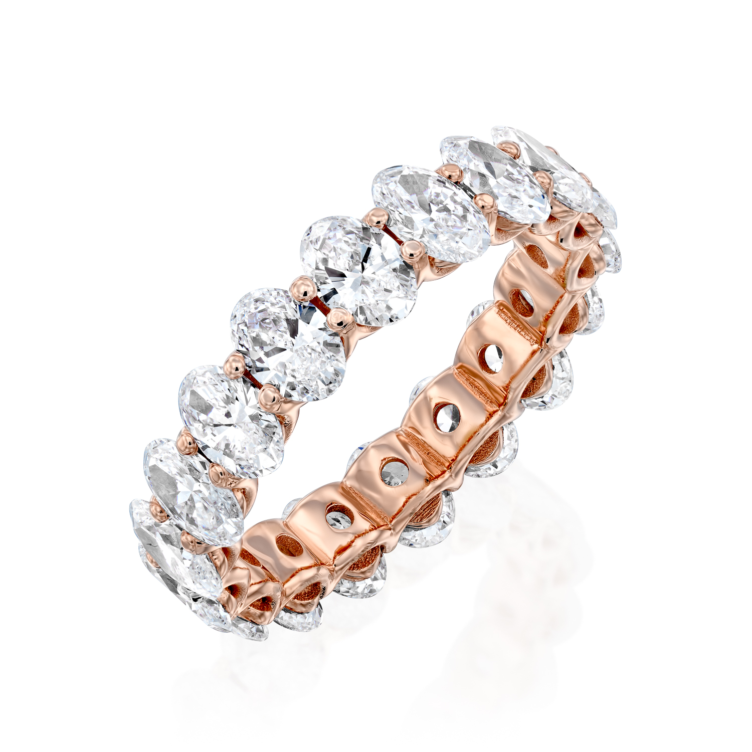 A row of oval-cut diamonds in 14K gold infinity design